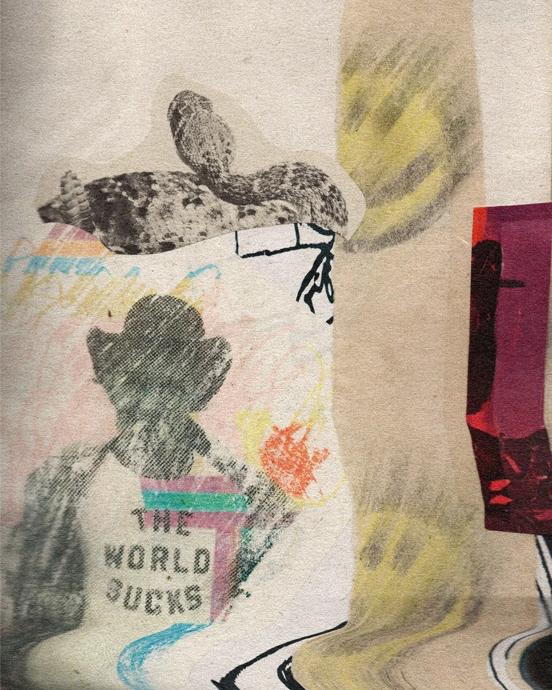 Otis Swain is a mixed media artist who’s works reside somewhere on the outskirts of Pop Art. Utilizing the found image techniques of collage & image appropriation, he aims to transform his findings into some type of new nostalgic narrative. Currently the work has been following his aesthetic attractions through the shrubbery into a type of ‘Tropic Noir’ setting. We find imagery laced with connotations centered around the ideas of escape, male ego, obsession and mystery. Swain was recently quoted as saying, “I’m just simply into making what I want to see. Exploring my own intuition, and embracing my own strange.”